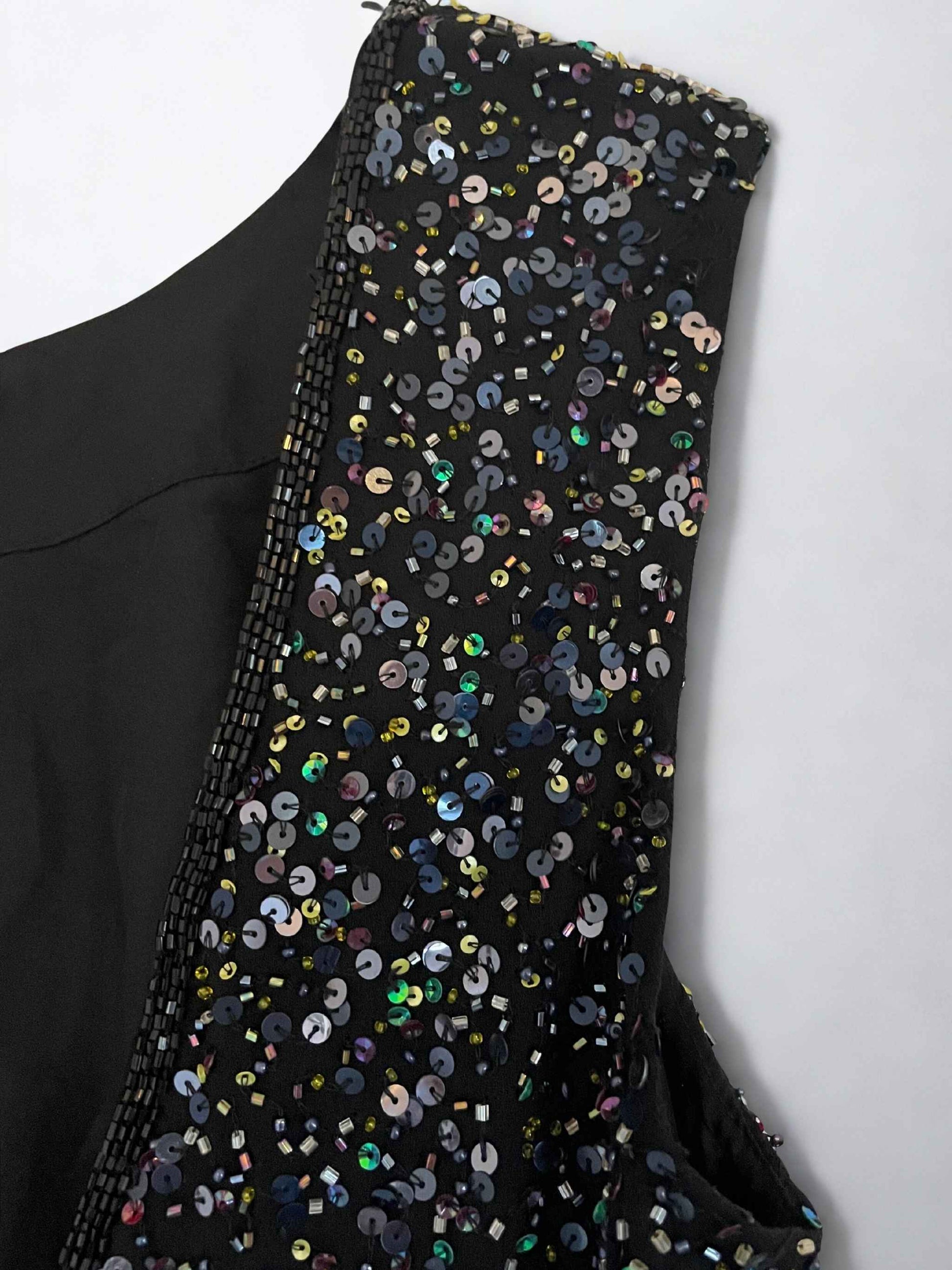 Lovely sleeveless top from Gestuz. Features a low back and green, blue and silver sequins, .