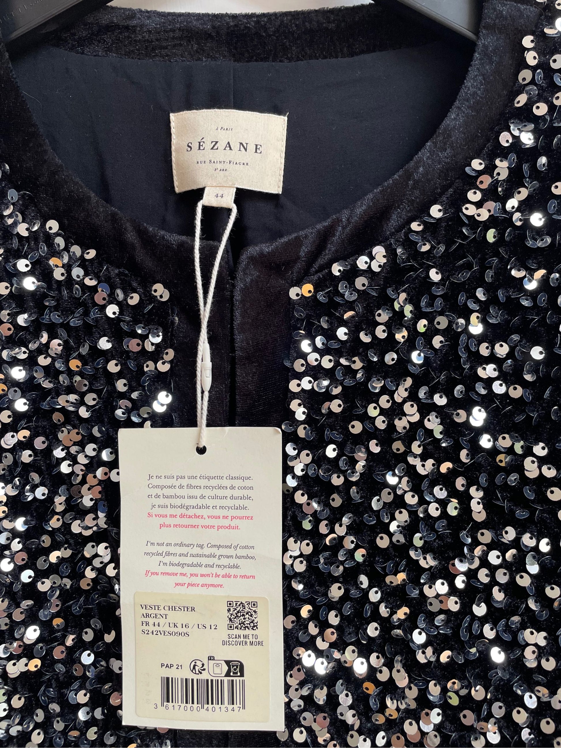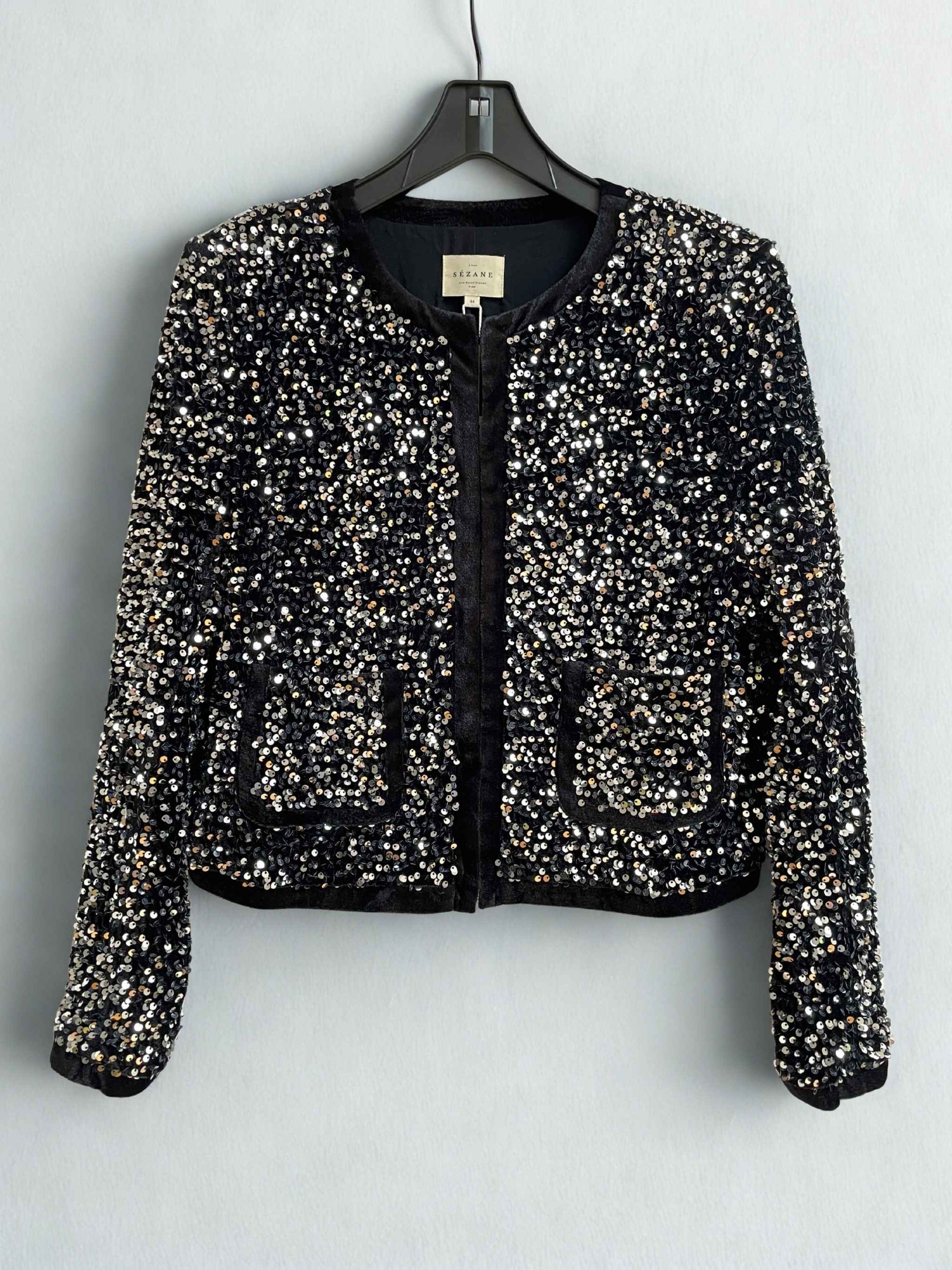 Sezane | Chester Sequin Jacket | Black & Silver | Size 16